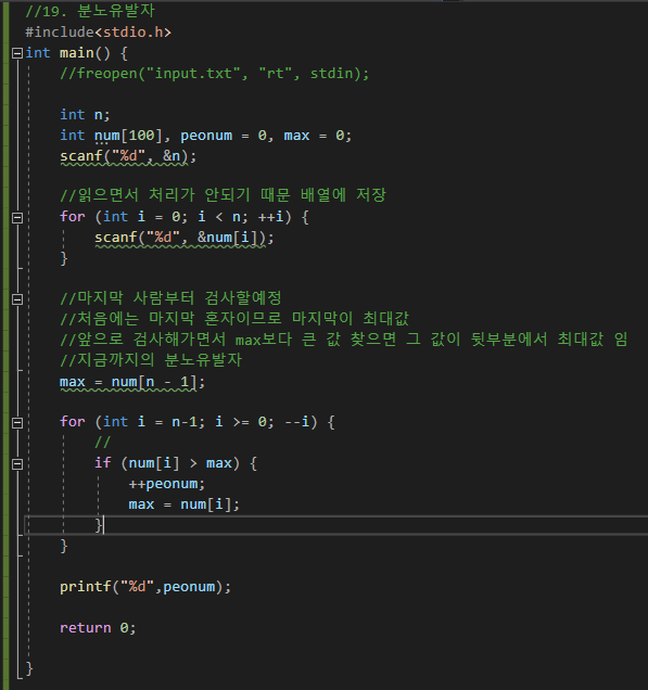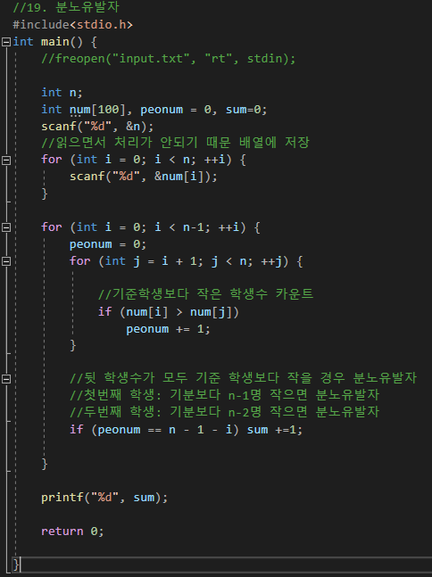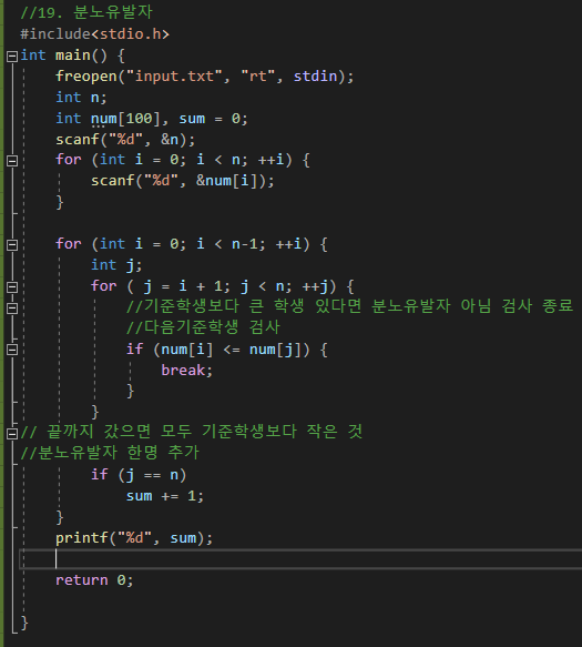 - break; 없이 끝까지 루프문이 갔다면 모두 기준보다 작다는 뜻임, 분노유발자카운트 1 증가