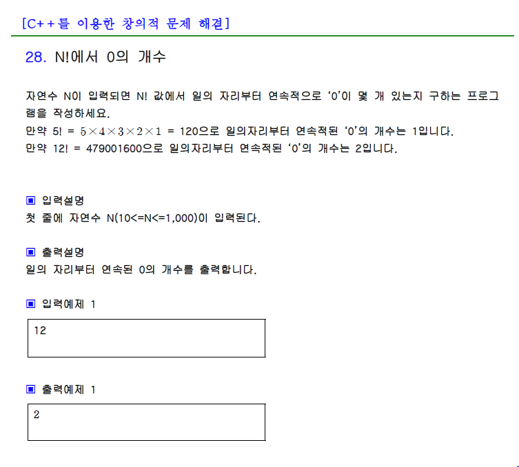 - factorial을 직접 구하고 10의 배수를 구하면 long long의 범위 마저 넘는 수 생기므로