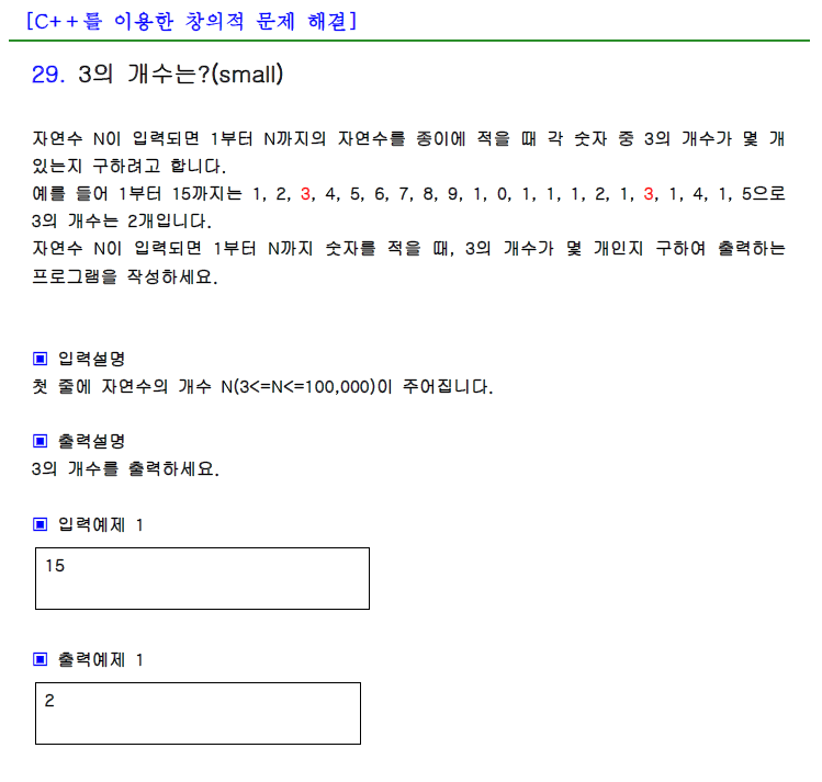 - 1부터 N까지 각 숫자를 10으로 나누면서 3이 있으면 카운트 값을 증가시킨다.
