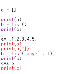 - c = a+b #a,b를 합쳐서 c라는 리스트 새로 생성하기