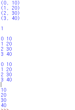 - for x in enumerate(a): # x에는 a의 각 요소들이 튜플 형태로 (인덱스번호, 값)으로 저장된다.