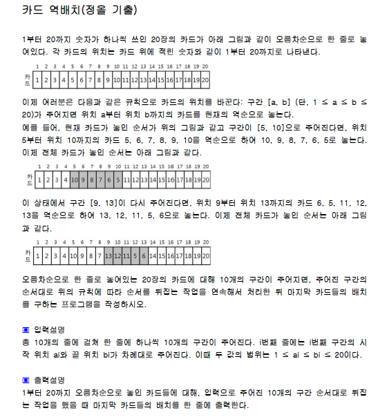 카드 역배치(정올 기출) 본문
