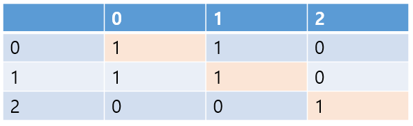- 그래프 연결상태 인접행렬 방식으로 표현