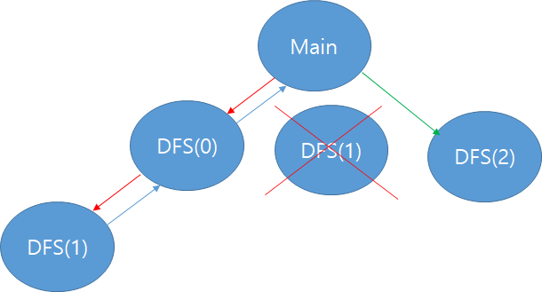 - 0번과 연결되었고 방문되지 않은 노드가 더이상 없으므로 return