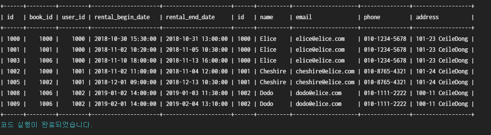 따라서 rental 테이블을 조회할 때, user 테이블을 연결해 같이 조회해 봅시다.