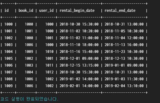 rental테이블에는 누가 어느 책을 빌려 갔는지 저장되어 있습니다.