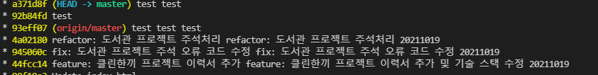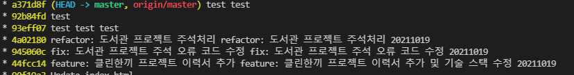 여기서 git push를 진행하고 git log를 다시 찍어보면 아래와 같은 git log가 나타난다.