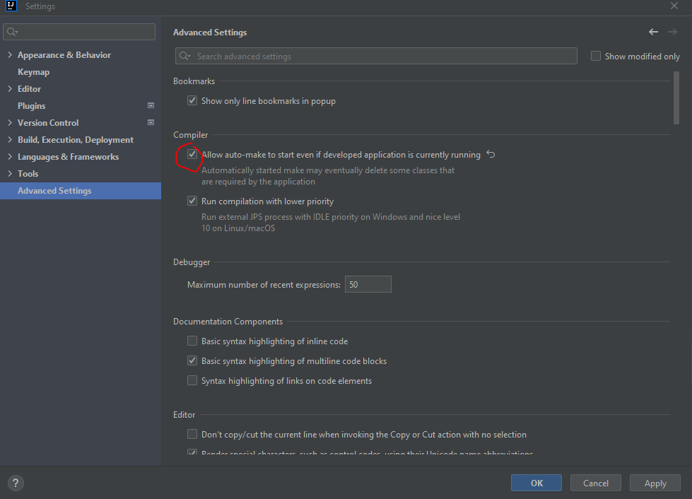 그리고 Settings에 Advanced Settings에서 아래 그림처럼 체크박스를 체크해주고