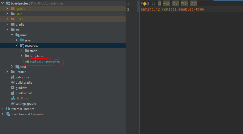 src/main/application.properties 에 아래 처럼 입력 해주고