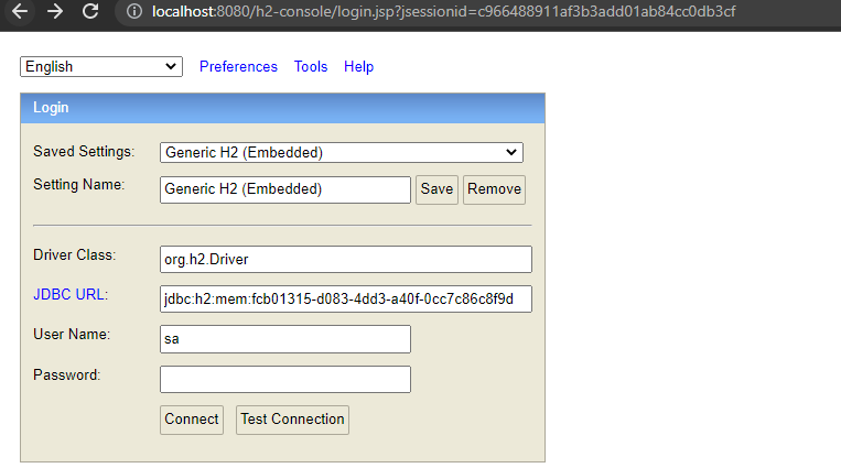 브라우저에서 다음의 주소로 접속하면 h2 DB에 접근할 수 있다.