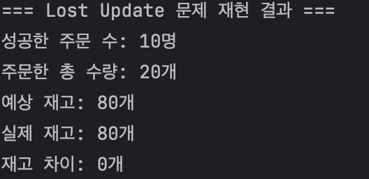 System.out.println("=== Lost Update 문제 재현 결과 ===");